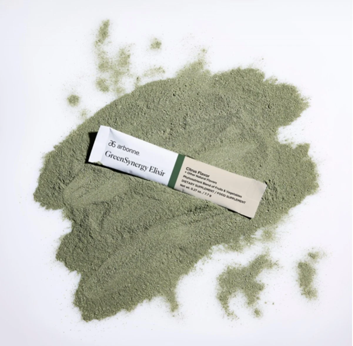 One and done! One stick pack to create synergy from the inside out with a drinkable Natural Health Product that features a source of probiotics, hyaluronic acid, botanicals and digestive enzymes all in one tasty citrus-flavoured serving. GreenSynergy Elixir™ features 13 full-spectrum digestive enzymes, vitamins to maintain general health, a rainbow of fruits and vegetables plus ingredients to help support healthy hair, skin and nails. Formulated without artificial colours, flavours or sweeteners; formulated without high fructose corn syrup, dairy or soy. Formulated without gluten.